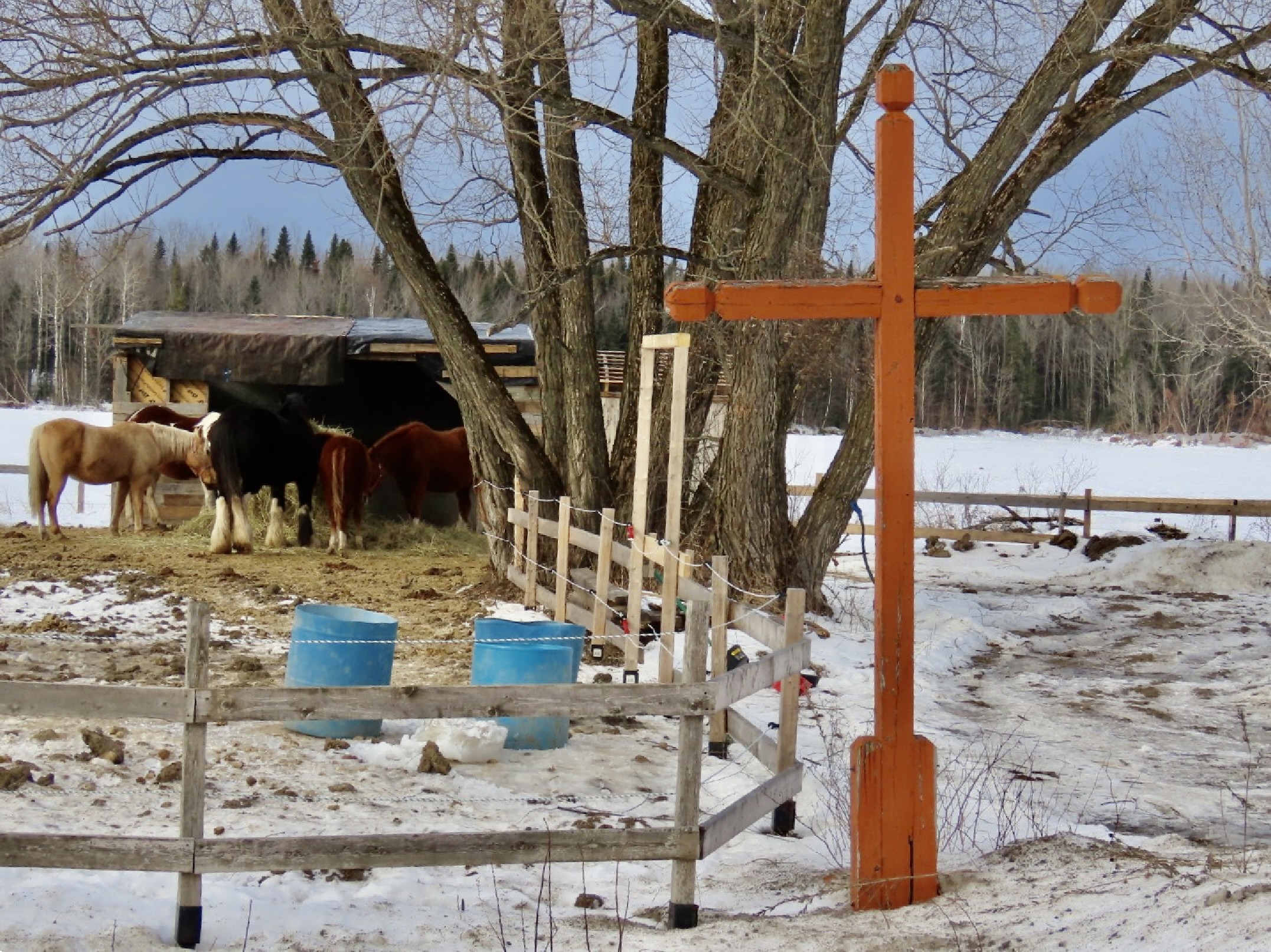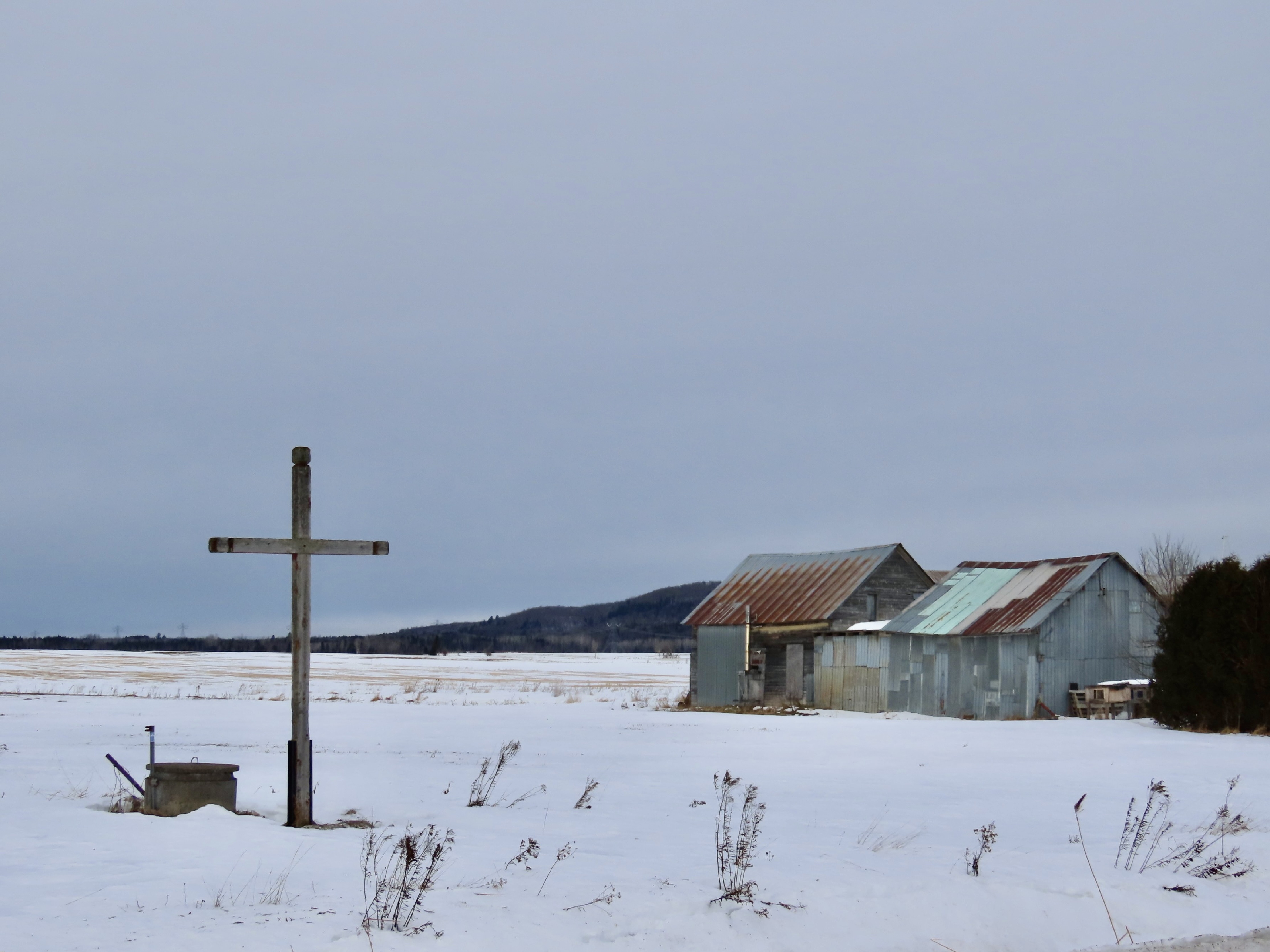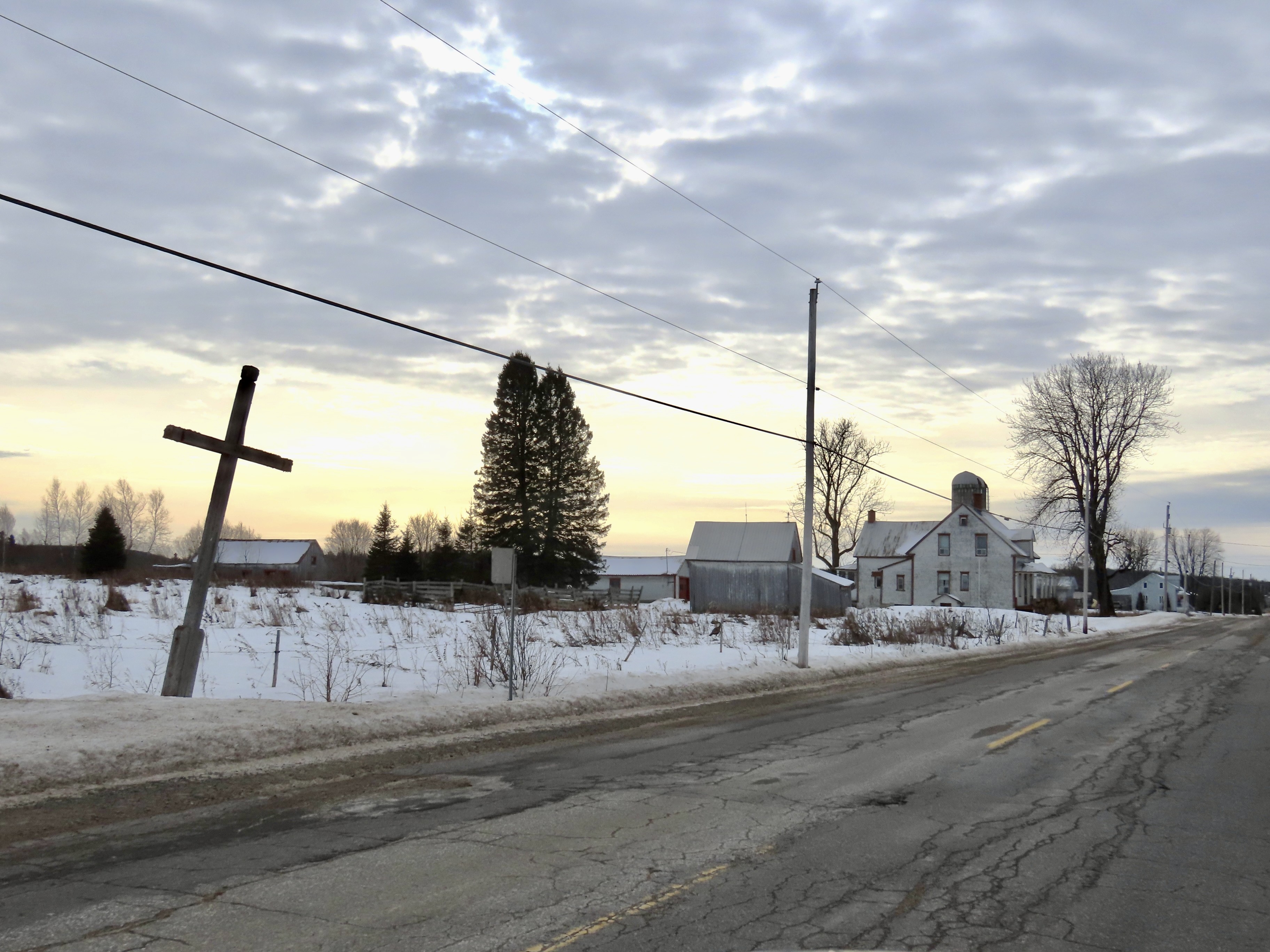 La croix no 2 située sur le rang Saint-Joseph est inclinée vers la droite.