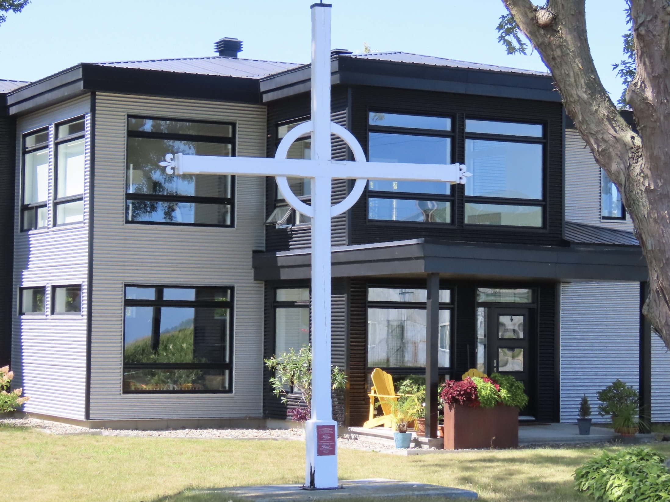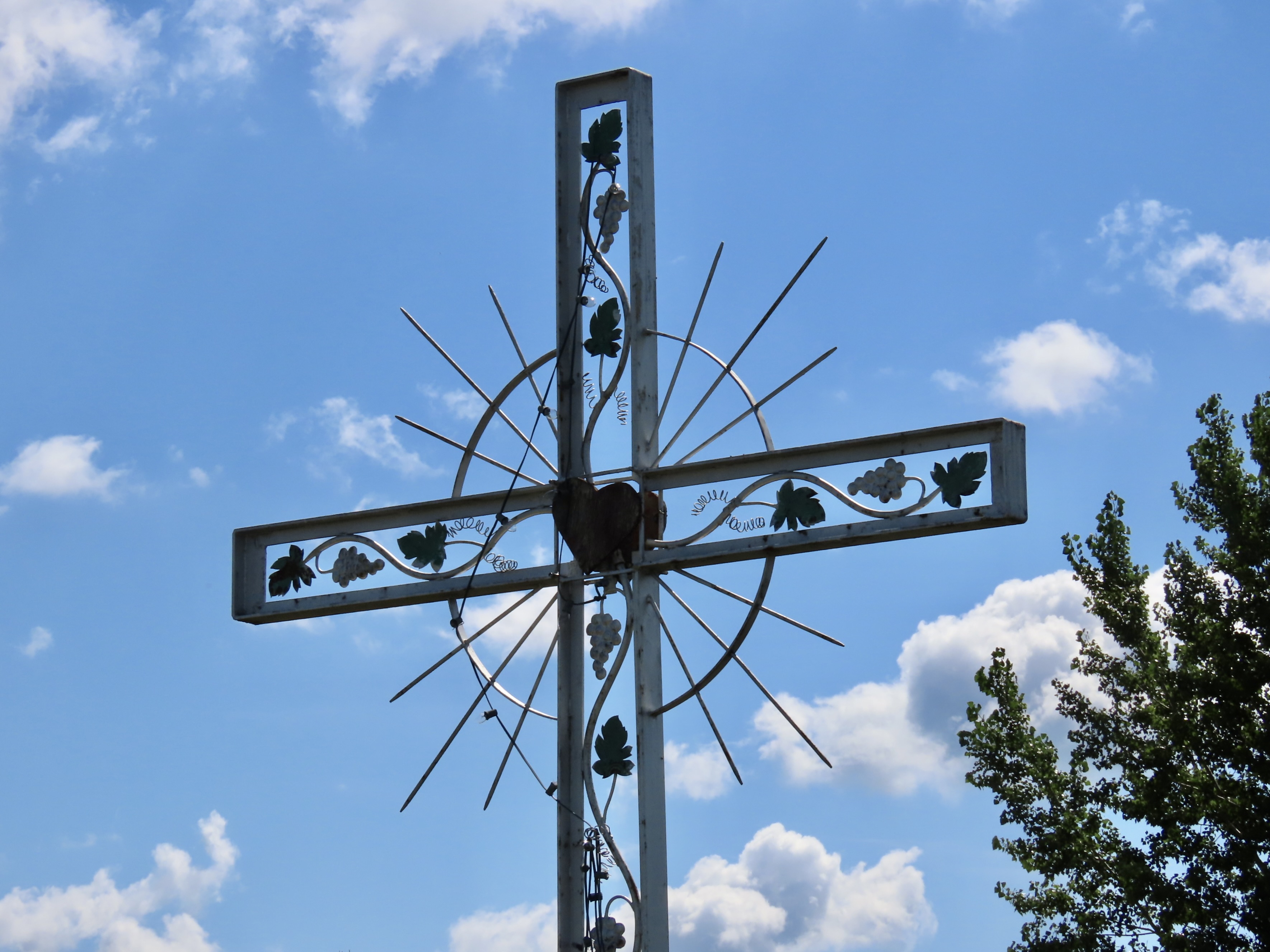 La croix no 4 provient du clocher de l’église de Saint-Césaire lorsque celle-ci a brûlé le 29 septembre 1985. C’est une très belle croix métallique.