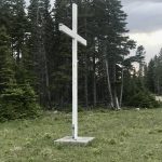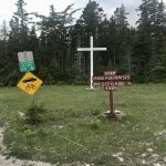 Croix située entre le chemin de la Baie-Sainte-Claire et celui de l’Anse-aux-Fraises à l’île d’Anticosti sur la Côte-Nord.
