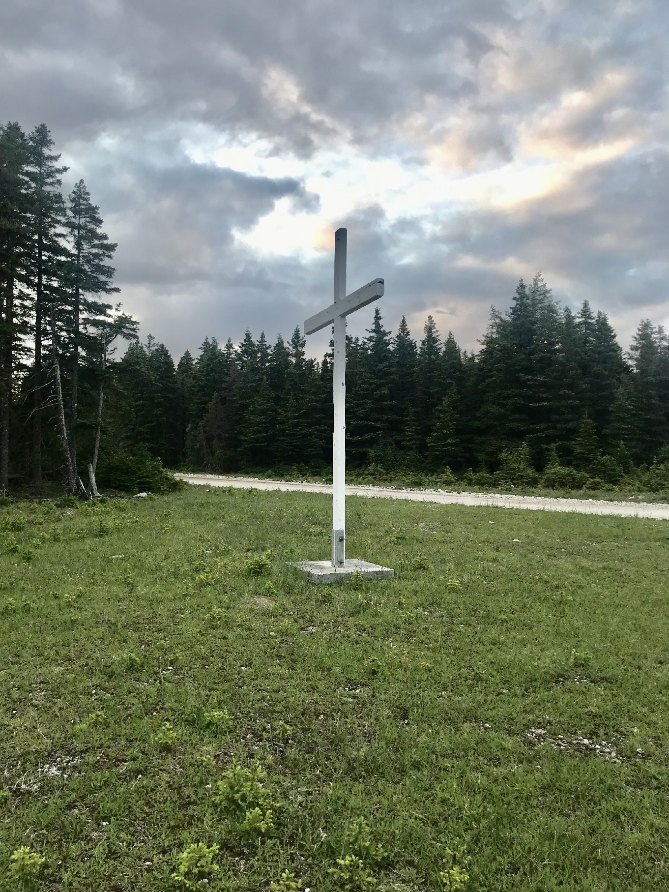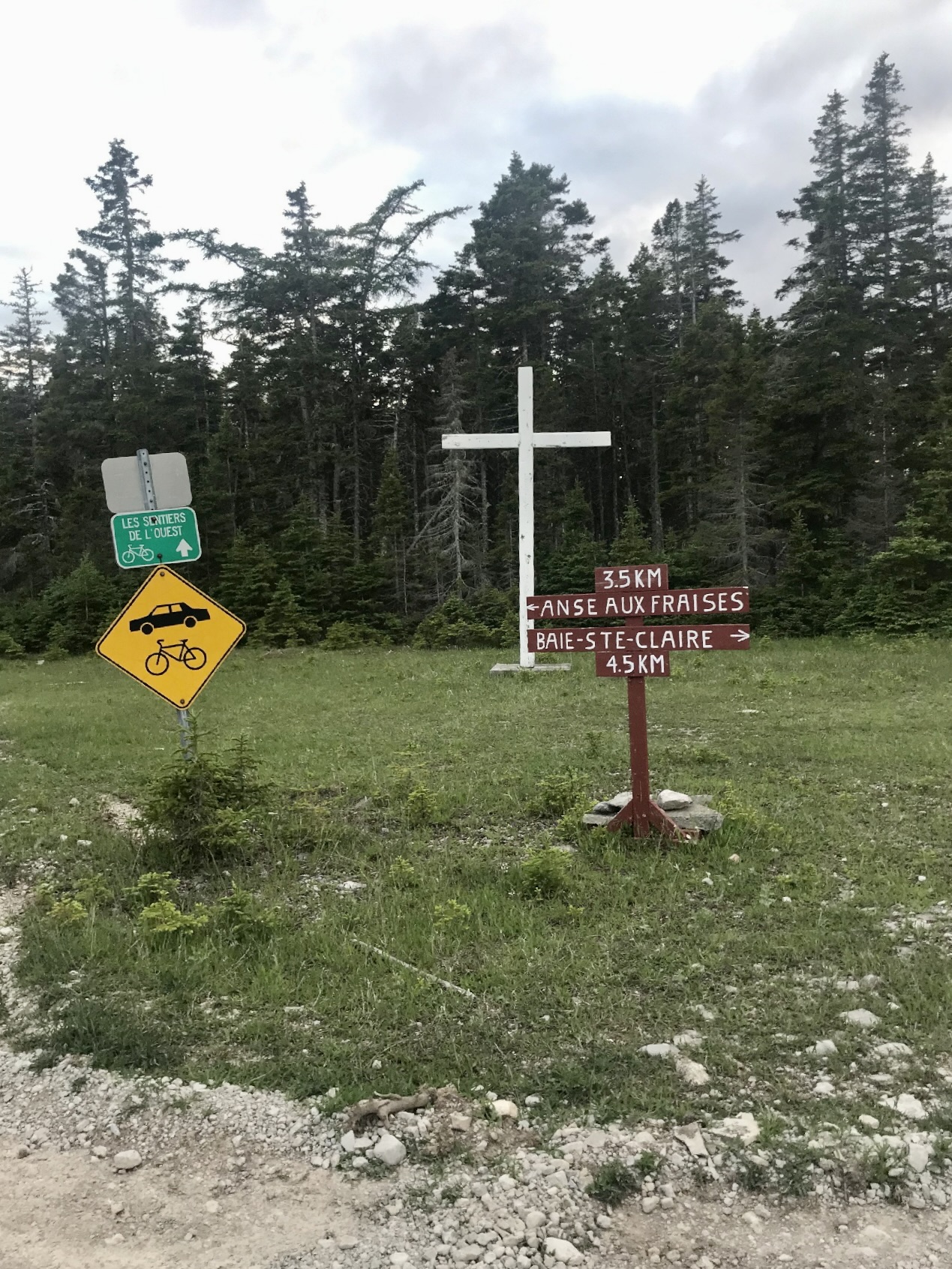 Croix située entre le chemin de la Baie-Sainte-Claire et celui de l’Anse-aux-Fraises à l’île d’Anticosti sur la Côte-Nord.