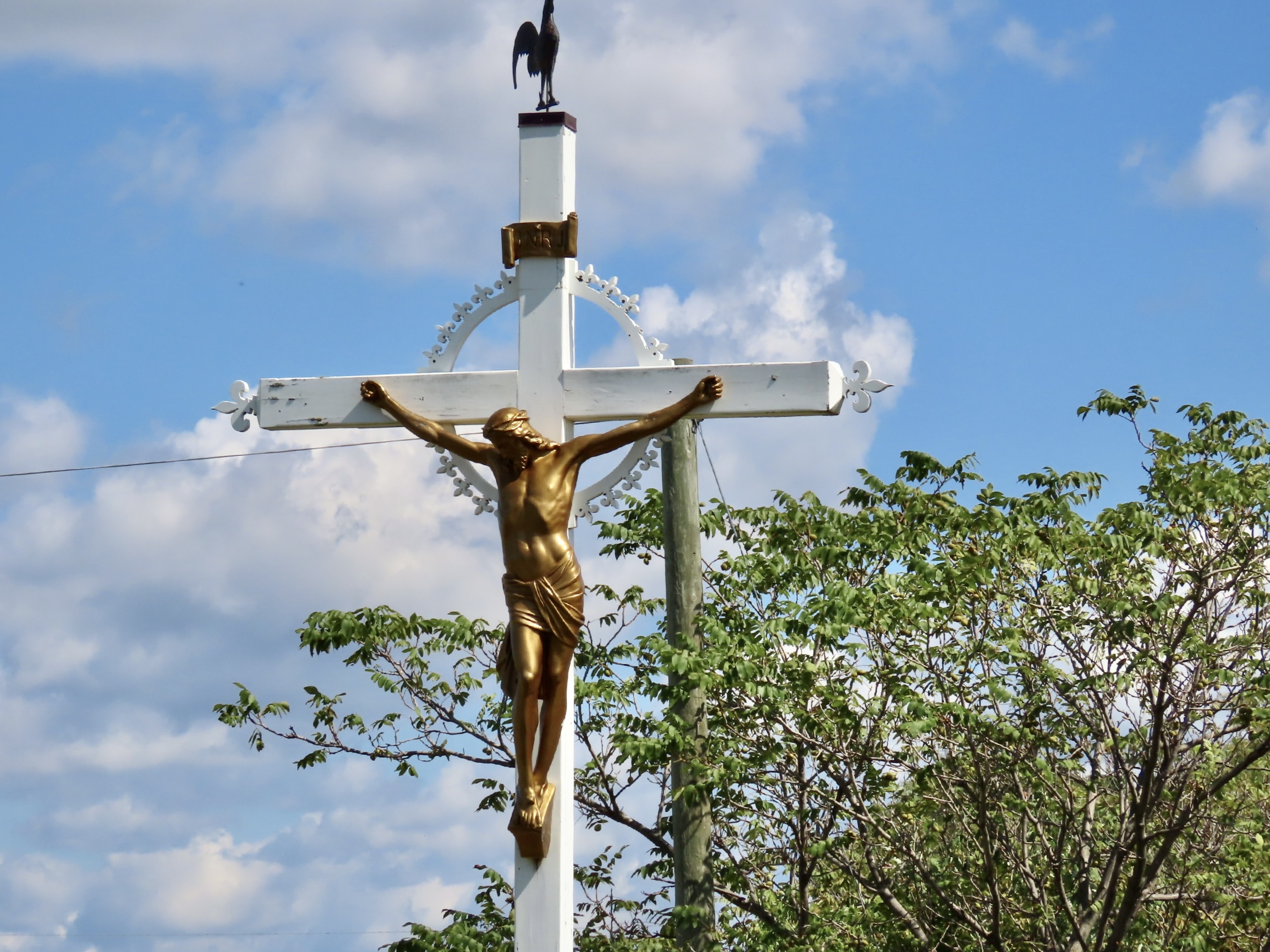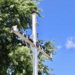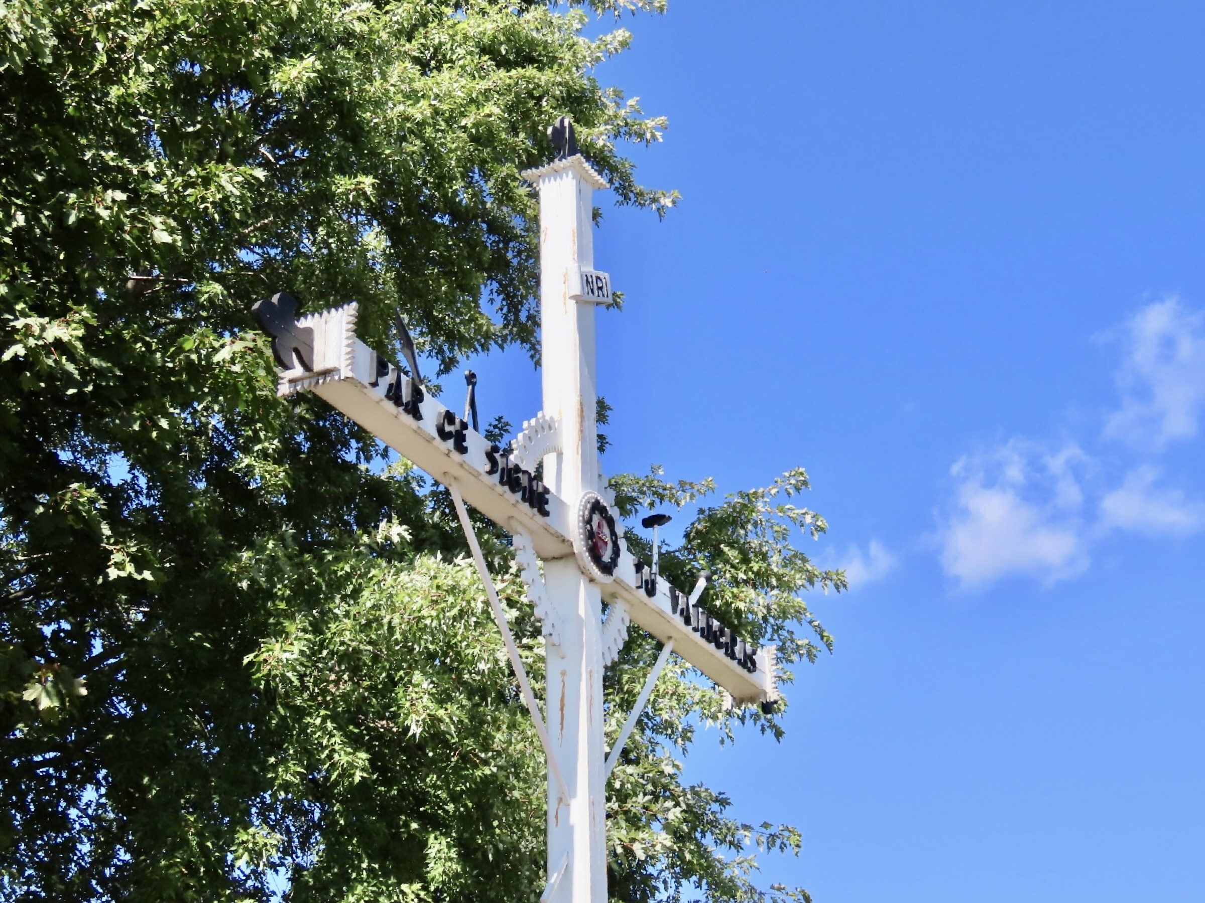 Le 29 avril 2013, la croix était de retour. Le corpus est le même mais, il a repris sa belle couleur d’antan. La croix a été refaite. Elle a maintenant des extrémités à motif fleurdelisé et un décor de l’axe à motif soleil en cadran.