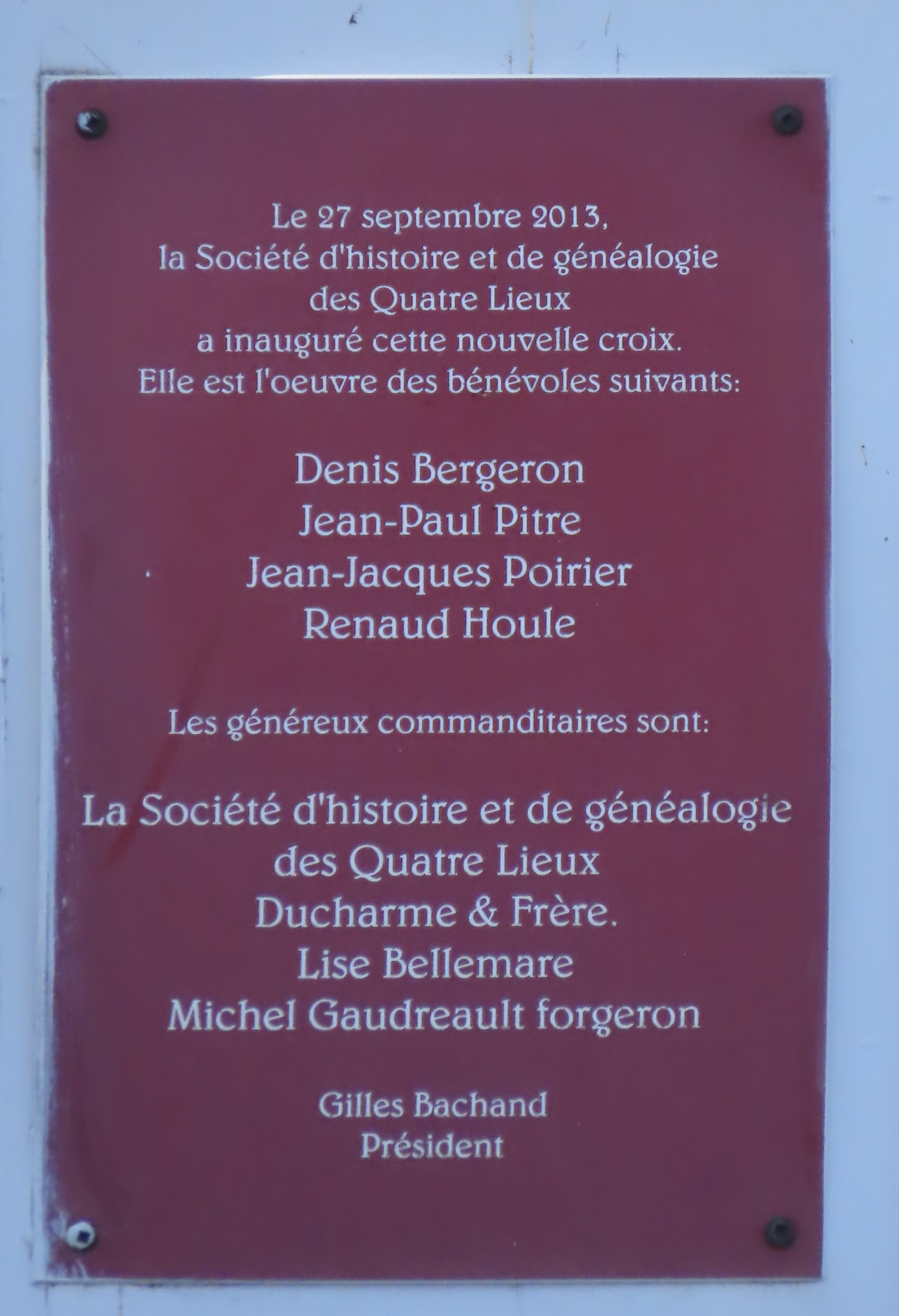 En septembre 2013, la Société d’histoire et de généalogie des Quatre Lieux a inauguré une nouvelle croix en remplacement de la précédente.