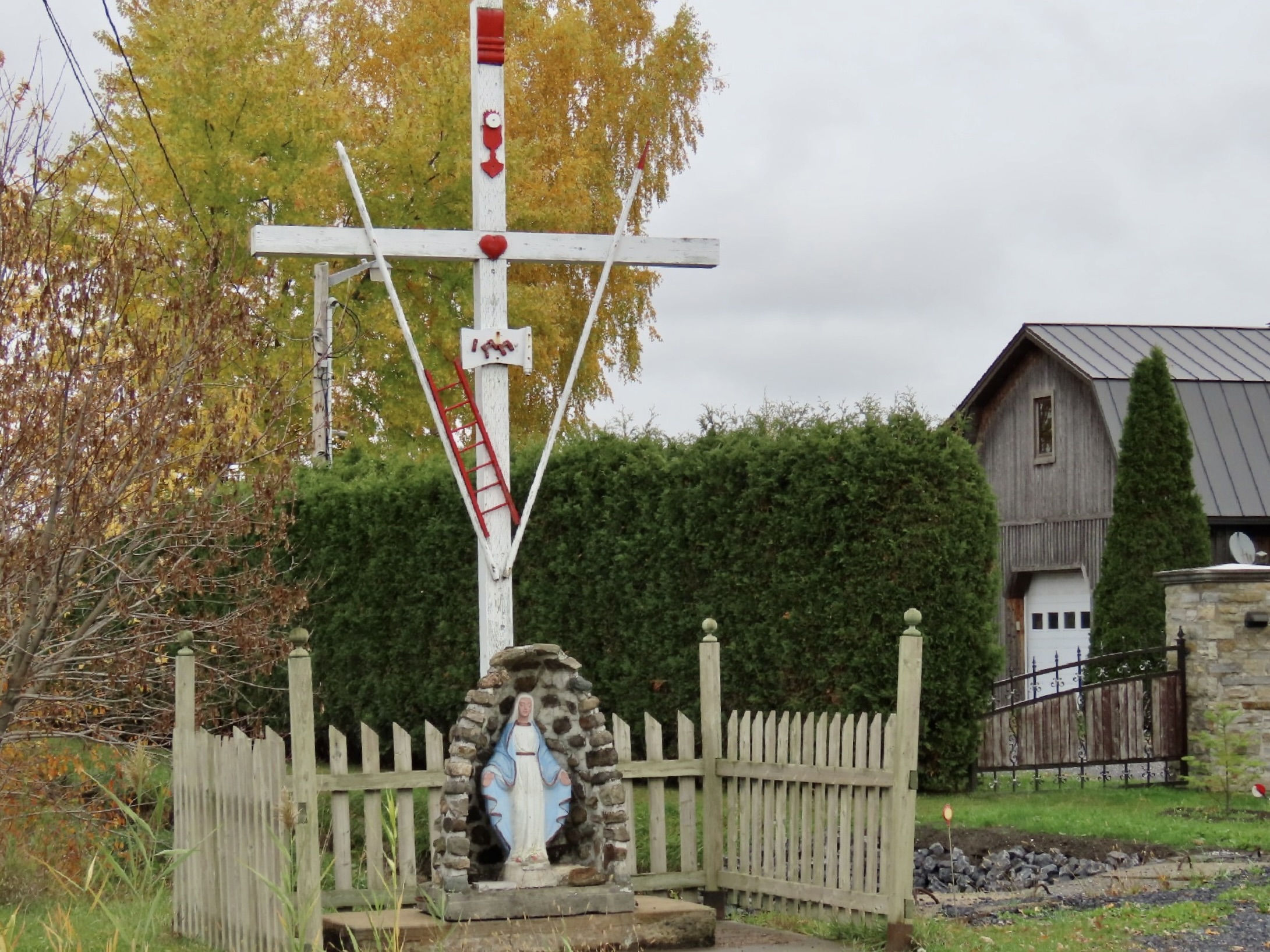 Croix située au 325 chemin du Ruisseau Des Noyers à Saint-Jean-sur-Richelieu (secteur L’Acadie) en Montérégie.