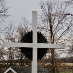 La croix a été repeinte en blanc et noir et le texte sur la traverse a été supprimé.